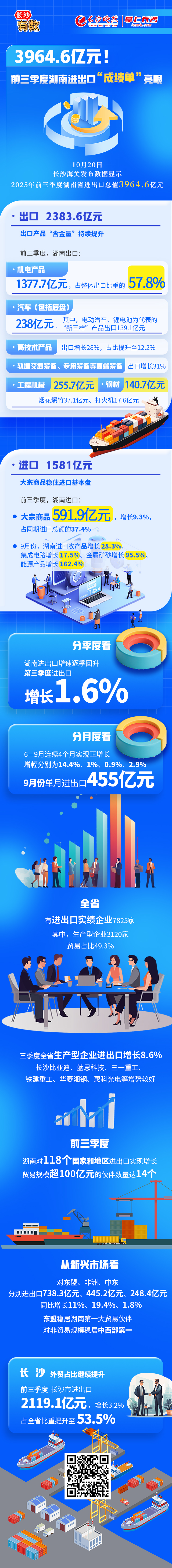3964.6亿元!前三季度湖南进出口“成绩单”亮眼 | 长沙有数 稿源:掌上长沙2025-10-20 22:09 相链区块链 该文章已上链>> 您的浏览器不支持 video 标签。 您的浏览器不支持 audio 标签。 最新数据显示,前三季度湖南进出口3964.6亿元,长沙占比重提升至53.5%,一起来看↓记者:刘捷萍作者:刘可馨 易昊编辑:曾茜前三季度湖南进出口3964.6亿元 长沙占比重提升至53.5% 【作者:刘可馨 易昊 曾茜 刘捷萍】 【编辑:刘可馨】 长沙晚报社版权声明 关键词: >>我要举报