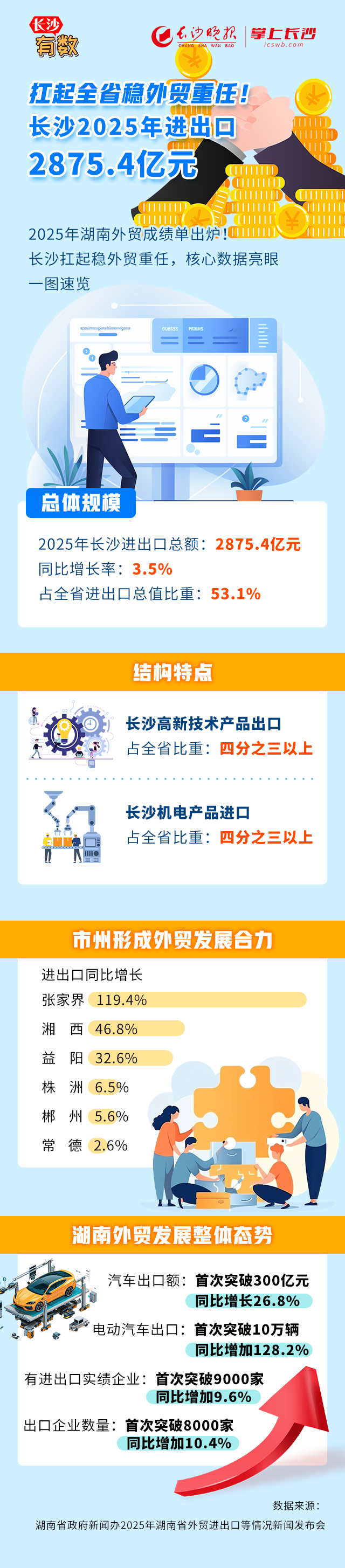 扛起全省稳外贸重任!长沙2025年进出口2875.4亿元 | 长沙有数 稿源:掌上长沙2026-01-21 15:14 相链区块链 该文章已上链>> 您的浏览器不支持 video 标签。 您的浏览器不支持 audio 标签。 2025年长沙外贸成绩单出炉!一图带你看懂↓作者:杨倩杰 王聘编辑:罗敏素材提供:刘捷萍 【作者:杨倩杰 王聘 罗敏 刘捷萍】 【编辑:杨倩杰】 长沙晚报社版权声明 关键词: >>我要举报