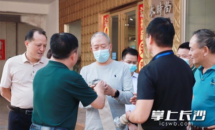 高杰一行先后来到长沙大厦和金苹果大市场,查看了长沙大厦主楼外墙情况,检查了新华楼餐厅安全使用燃气、电的情况,检查了桔子酒店消防安全情况;检查了金苹果大市场内消控室、地下消防水池等安全设施和电动车消防安全管理情况。
