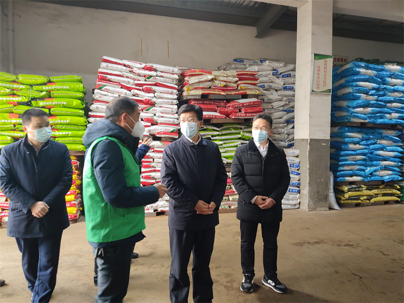 在长沙美丰农资连锁有限公司,周晓理现场察看当前春耕生产和化肥淡季商业储备、农资销售稳价保供情况。