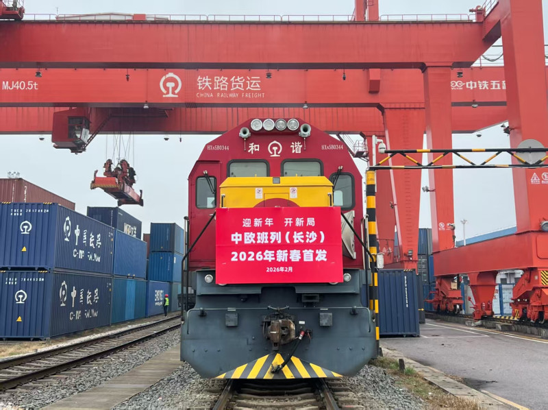 During the 2026 Spring Festival holiday (February 15–23), the China-Europe (Changsha) freight train service maintained normal operations. A total of 34 import and export trains were dispatched, representing a 127% year-on-year surge — including 20 export trains and 14 import trains. Its high-frequency operation ensured stable international logistics.