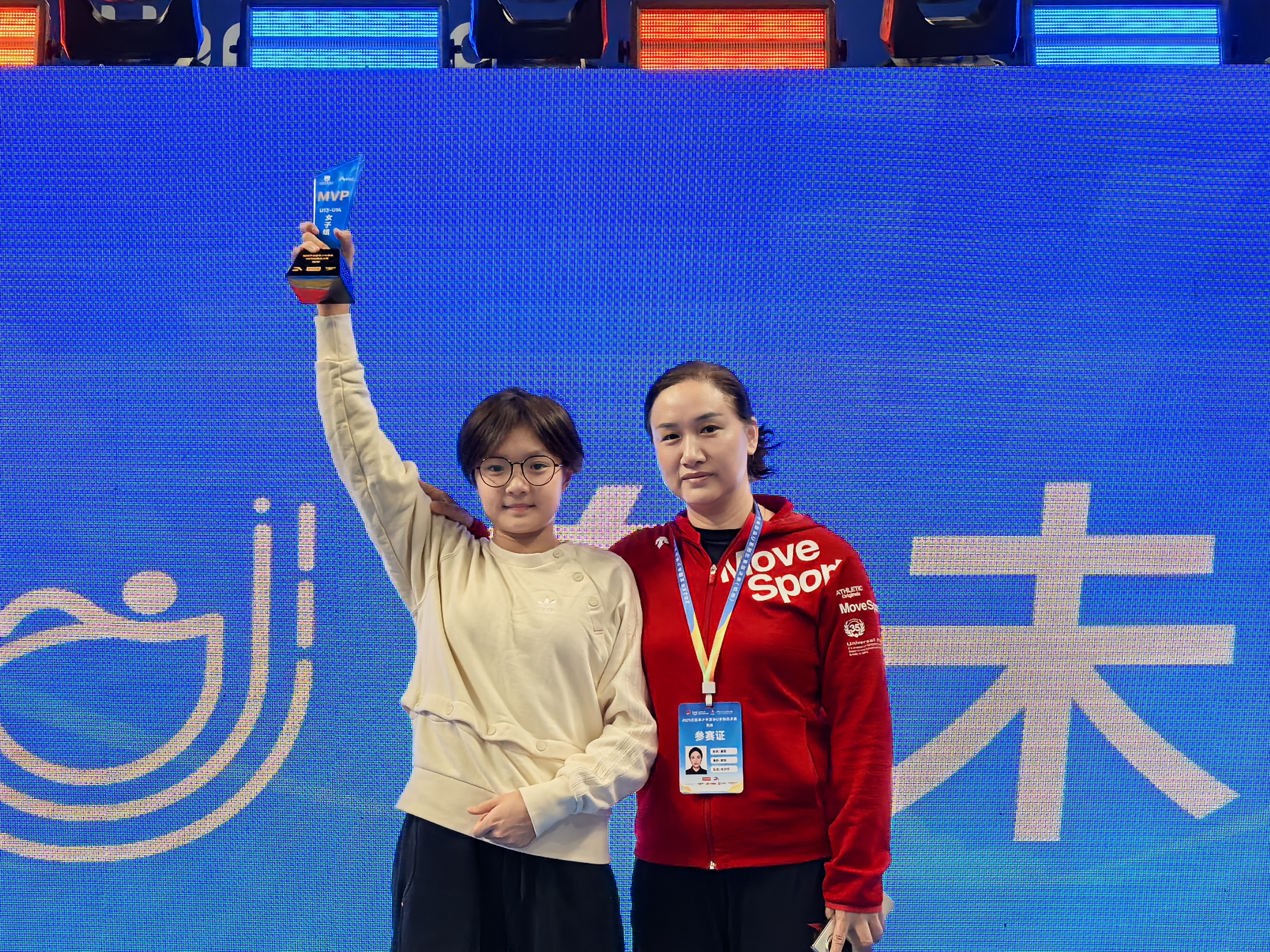 Hailed as "the cradle of China's future swimming stars," this competition witnessed outstanding performances from Hu Qianhe of the Changsha team: she claimed two gold medals and one silver medal, broke three national records, secured the MVP (Most Valuable Player) title in the women's U13-U14 age group based on points, and her time in the 200m breaststroke surpassed that of Japanese swimmer Mana Ishikawa, the newly crowned Asian Championships champion, by 0.02 seconds.