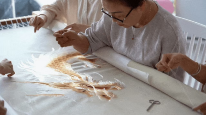 当汽车变成“移动艺术空间”,你会想拥有一辆湘绣特别款红旗汽车吗?近日,在长沙县李艳刺绣艺术馆,首幅绣制于红旗金葵花国耀系列汽车穹顶的“龙腾盛世”图案圆满完成,标志着湘绣首次以动态艺术形态融入现代工业产品,开启“可移动的艺术空间”新篇章。