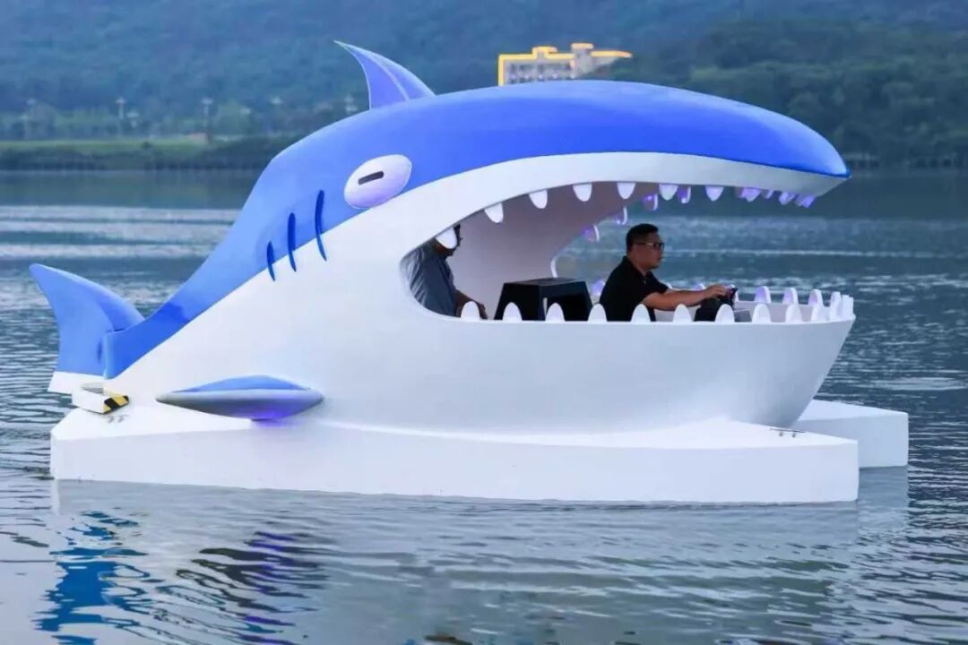 At the Water Sports Center by Meixi Lake in Changsha, a fleet of cruise boats designed to look like sports cars, flying saucers, and sharks are neatly moored at the pier. These uniquely styled vessels have sparked widespread curiosity, drawing crowds of visitors who make special trips just to see them.