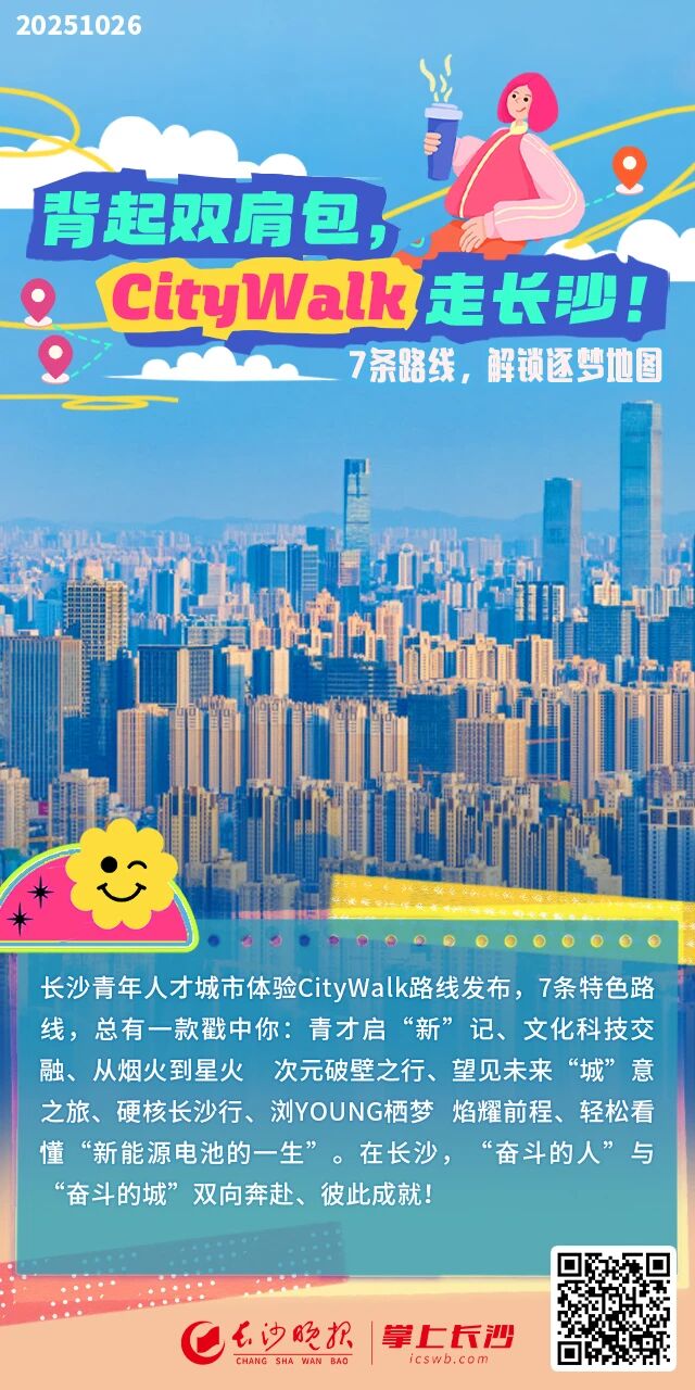 26日,长沙重磅发布了7条青年人才城市体验CityWalk路线地图,从青年创业孵化、文化艺术体验、人才安居服务等多维度,展现长沙“产业有实力、双创有活力、安居有能力”的生态。