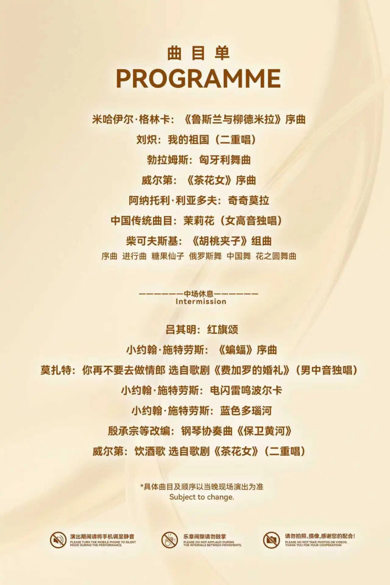 要达到这样完美的效果,必然要在音乐会曲目上做文章、下功夫。