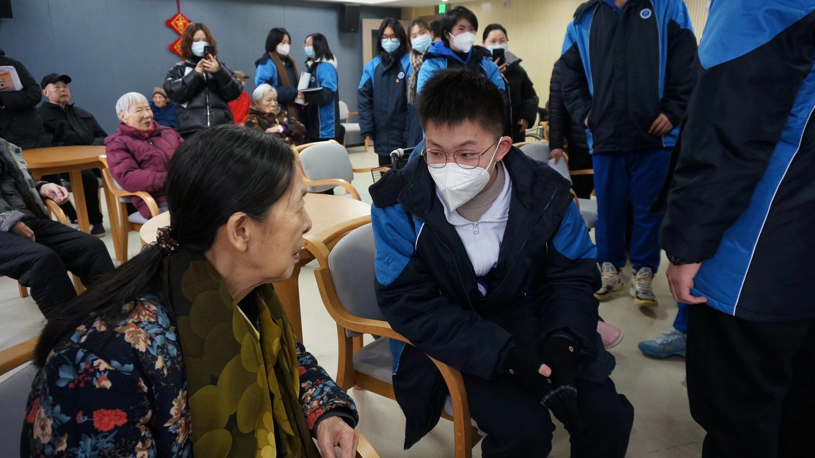 活动现场,同学们热情高涨,分工明确,有的为老年人整理床铺、打扫房间,有的为他们理发、修指甲,还有的与老人们亲切聊天,聆听他们的往事,分享生活的点滴。同学们的到来,让福利中心的老年人们感受到了久违的热闹与欢乐。