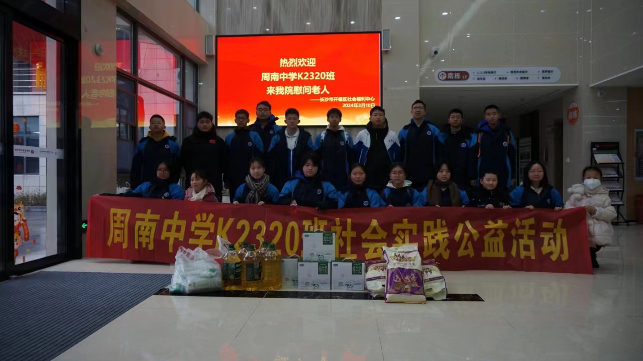 长沙晚报掌上长沙3月11日讯(通讯员 蔡子瞾 周凡茜)带着满载爱与关怀的日常生活用品,前往开福区社会福利中心,为老人送去温暖与祝福……3月10日,周南中学2320班的同学们自发组织了一场“学雷锋,送温暖”敬老院慰问活动,进一步传承雷锋精神,弘扬中华民族尊老爱老的传统美德。