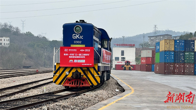2月24日,春节后首个工作日,中非经贸株洲陆港内汽笛长鸣,满载三一制造高端消防车的湘粤非铁海联运专列缓缓驶出。