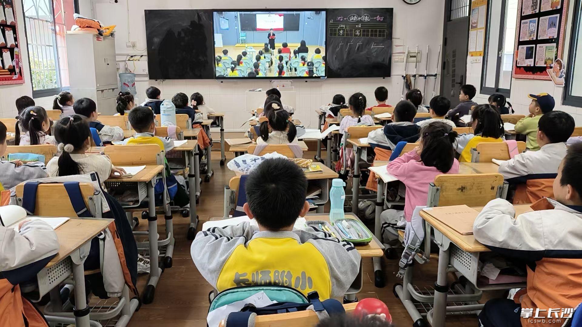 本次活动通过“主会场+分会场”联动形式开展,主会场设在长师附小录播教室,开福区教育局关工委副主任洪清、长师附小德育副校长黄春燕、党支部副书记吴梦瑶、少先队大队辅导员向伟谊和各班学生代表全程参与。全校其他学生则在教室同步收看直播,活动信号还实时共享至长师附属小学总校的长师致远、长师春建、长师特立三个校区。数字化平台打破了空间限制,让多校区师生“云端”共聚一堂,同上这堂有温度、有深度的思政大课,实现了优质教育资源的跨校区共享,让榜样的力量传播更广、影响更深。