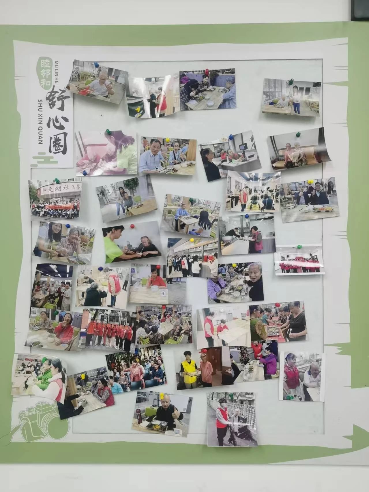 食堂的照片墙上,记录着这些温暖瞬间:银发老人们三五成群围坐餐桌,对着镜头开心地竖起大拇指;漆扇活动中,老人们手法娴熟地制作染料;节日里,志愿者上门慰问老人并送上鲜花......