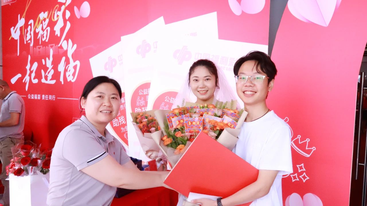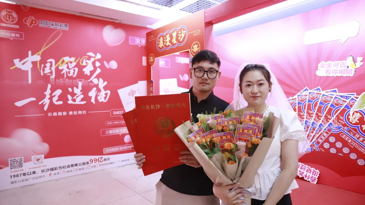 此外,在5.20这个充满爱的日子里,湘江新区福彩中心也联动美澜东方艺术中心,在湘江新区婚登处开展“美好生活”的福彩公益推广活动,为当天领证的新人们送上福彩大礼包向他们表达祝福,传递爱心。
