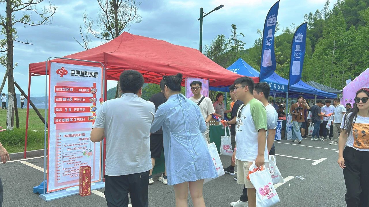 为给当天领证的新人们送上祝福,长沙福彩快乐助力,在活动现场设置了打卡点,现场打卡长沙福彩展位即可获得赠票和文创产品。活动中,现场开展的欢乐投壶、福运赠票、有奖问答等活动引发了新人们的关注,参与活动即有机会获得“福运刮片”“福运扇”“福袋”等文创品,福彩展位前排起了长队,大家兴致勃勃的在这里玩游戏,赢奖品了解福彩文化。