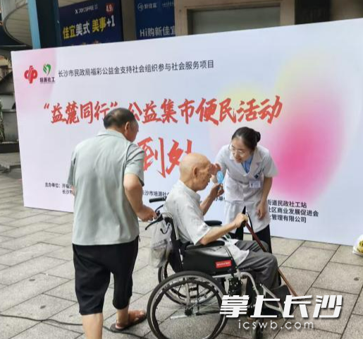 近日,在福彩公益金的支持下,长沙市培源社会工作服务中心携手开福区望麓园街道中山路社区、街道民政社工站、开福区社区商业发展促进会、湖南贝雷德物业公司等多家单位,特别邀请了辖区内的残疾、低保等特殊家庭老人以及高龄独居空巢老人等群体,共同在铂宫小区前坪举办了一场别开生面的“益麓同行”主题公益便民集市。