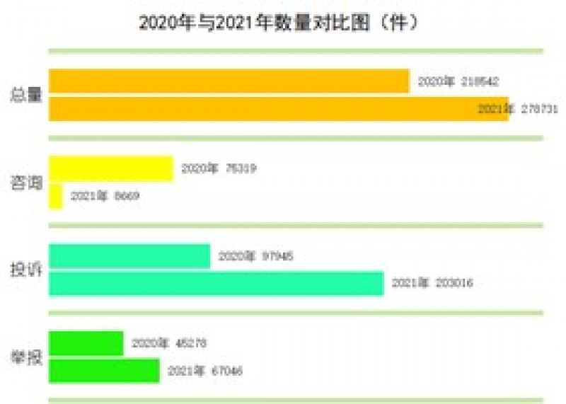 从这两大类投诉数据的变化可以看出,居民收入水平的提高,消费需求从生存型、实物型消费即买商品向发展型、服务型、体验型消费即买服务转移,人们更多地愿意花钱在健康、旅游、教育、文化娱乐、餐饮等服务消费方面。与此同时,服务消费投诉的总量和占比也有明显增加,服务消费投诉的增长暴露了服务行业发展与消费者期望之间的差距。