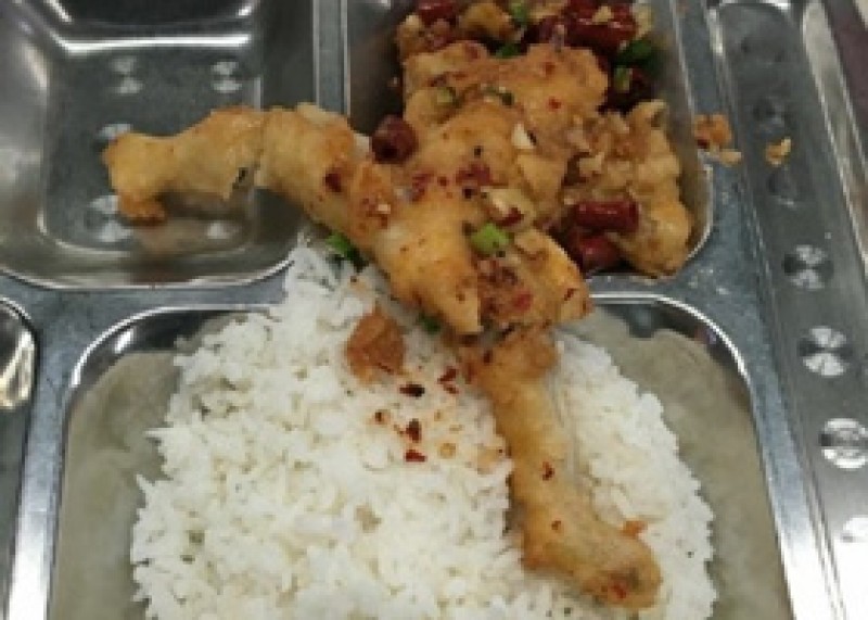 每一个蛙棚就是牛蛙们的集体宿舍。投食竹桥将池面一分为二,浮垫覆盖在水面之上,牛蛙们挨挨挤挤端坐在浮垫之上。一两只牛蛙腾起落水,惊动周边一片,溅起的水花热闹了蛙池。基地养殖人员介绍,他们将成蛙的密度控制在每平方米120只左右,每亩为2万到2.25万公斤。这一养殖密度大约是沿海一带牛蛙养殖基地密度的65%左右。养殖密度的合理控制,为牛蛙们提供了充足的生存空间,能有效减少因密集而产生的胁迫性疾病。这样的生长环境下,减少了牛蛙成长过程中使用药物防治的量次。养殖密度控制是该基地在源头降低食安风险的又一举措。