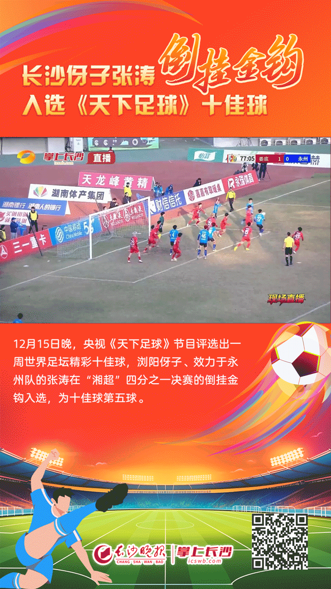 长沙伢子张涛倒挂金钩入选《天下足球》十佳球|动态海报 稿源:掌上长沙2025-12-16 18:04 相链区块链 该文章已上链>> 您的浏览器不支持 video 标签。 您的浏览器不支持 audio 标签。 12月15日晚,央视《天下足球》节目评选出一周世界足坛精彩十佳球,浏阳伢子、效力于永州队的张涛在“湘超”四分之一决赛的倒挂金钩入选,为十佳球第五球。牛!长沙伢子张涛倒挂金钩入选《天下足球》十佳球作者:谭伟 刘家婧编辑:曾茜素材提供:赵紫名 【作者:谭伟 刘家婧 曾茜 赵紫名】 【编辑:谭伟】 长沙晚报社版权声明 关键词: >>我要举报