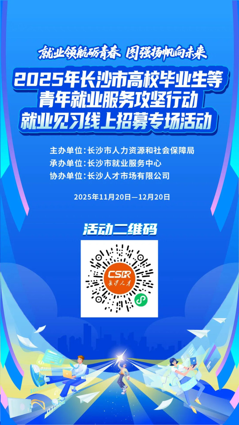 扫描下方二维码,即刻进入2025年长沙市就业见习线上招募专场,浏览优质岗位、提交简历,职业成长的黄金机会不容错过!