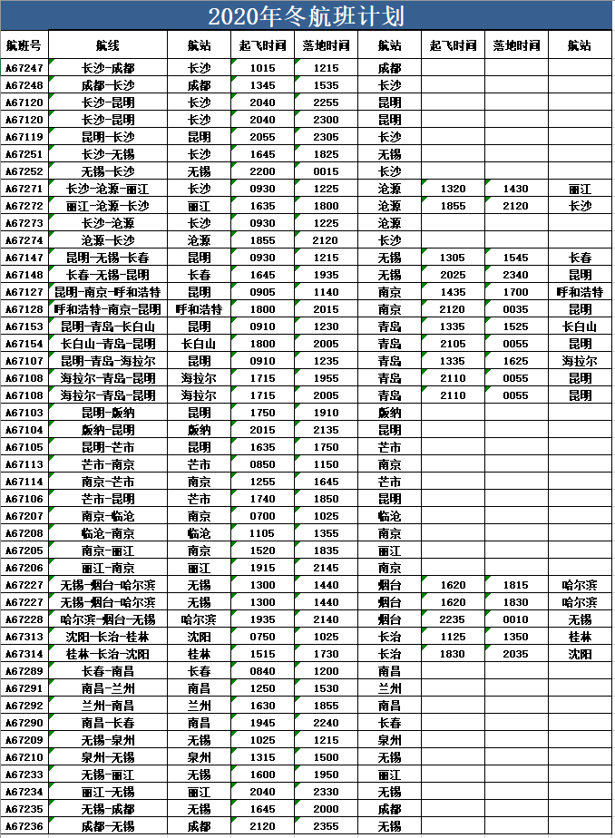 此外像A67271/2长沙-沧源-丽江航线、A67251/2长沙-无锡等航线的开通,也极大丰富了湖南旅客的出行选择,满足了湖南人民更多的出行要求。
