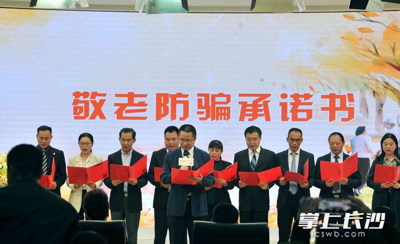 启动仪式上,湖南康乐年华养老产业集团有限公司总经理袁云犁等10家养老机构负责人,在启动仪式上共同宣读承诺书,代表全省养老服务机构,承诺将认真贯彻落实相关要求,不参与、不组织各类欺老骗老活动,坚决抵制和防范各类欺老骗老活动进机构,切实保障老年人身心健康。