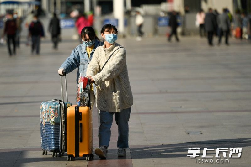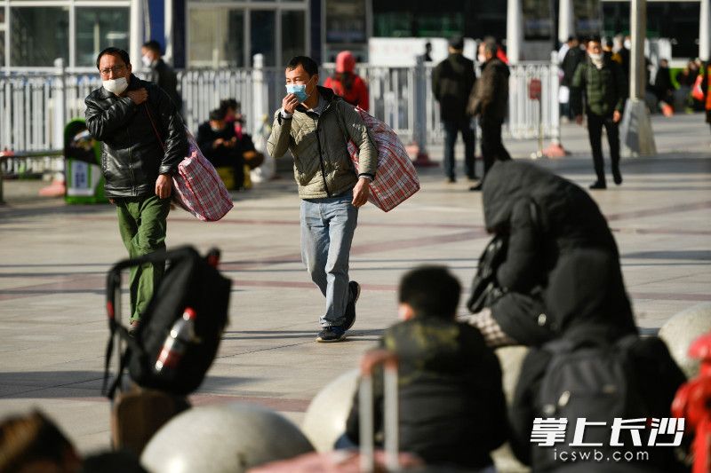 长沙晚报掌上长沙2月17日讯  (全媒体记者 黄启晴)今日,长沙迎来了春日暖阳的天气,出行的旅客有所增多。在长沙火车站,旅客们自我防护的心却没有因此松懈,全副武装的踏上旅途。