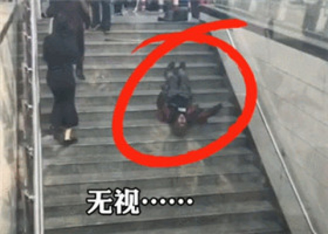 由于公安窗口位于大厅二楼,丰云考虑他们行动不便,乘大厅中间的扶梯上楼存在安全隐患。她建议并主动提出带他们绕到后面,搭乘直升电梯,但对方并未采纳建议。随即,老人及其儿子牵着手走向扶梯。