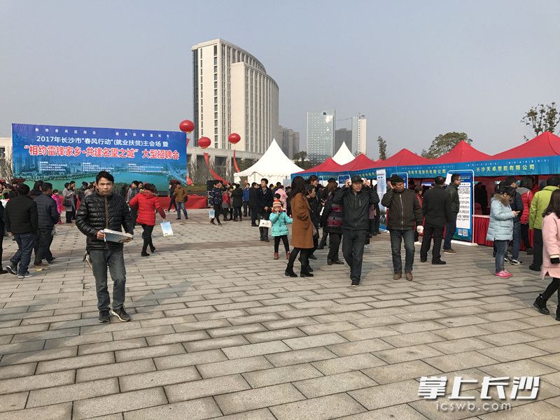 长沙晚报讯掌上长沙2月9日讯(记者 李静 实习生 胡玲)今天上午,长沙市望城区人民广场人潮涌动,由长沙市人社局、望城区政府、望城经开区管委会共同主办,长沙市就业服务局、望城区人社局、望城经开区产业发展局承办的“和煦春风送岗位,就业扶贫惠民生”暨“相约雷锋家乡 共建名望之城”大型招聘会在此举行。该活动是2017年长沙市“春风行动”的主会场活动,现场近200家企业集中揽才,为当地群众带来近万个岗位。