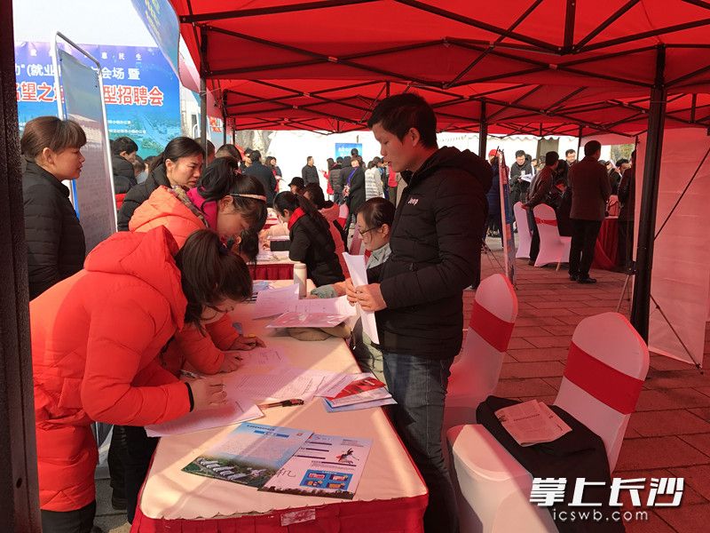 记者在现场看到,因为长沙市今年的“春风行动”突出精准扶贫主题,现场企业提供的大部分都是适合贫困劳动力就业、企业急缺的普工等岗位。望城区人社局负责人介绍,“相约雷锋家乡 共建名望之城”系列招聘会线下活动将持续到3月底,将在区、街镇、省定贫困村陆续举办23场专场招聘会,提供近2万个就业岗位;每月28日还将在区人力资源市场(望城大道100号)定期举办招聘会;根据企业需求,适时举办专场招聘会,为企业量身开展订单式、定向式培训。线上,同步开通“就业通”微信公众号,定期收集、发布企业用工、劳动者求职信息等,畅通就业创业渠道。长沙市“春风行动”还将在全范围内陆续举行,共举办105场专场招聘活动,提供20万就业岗位。
