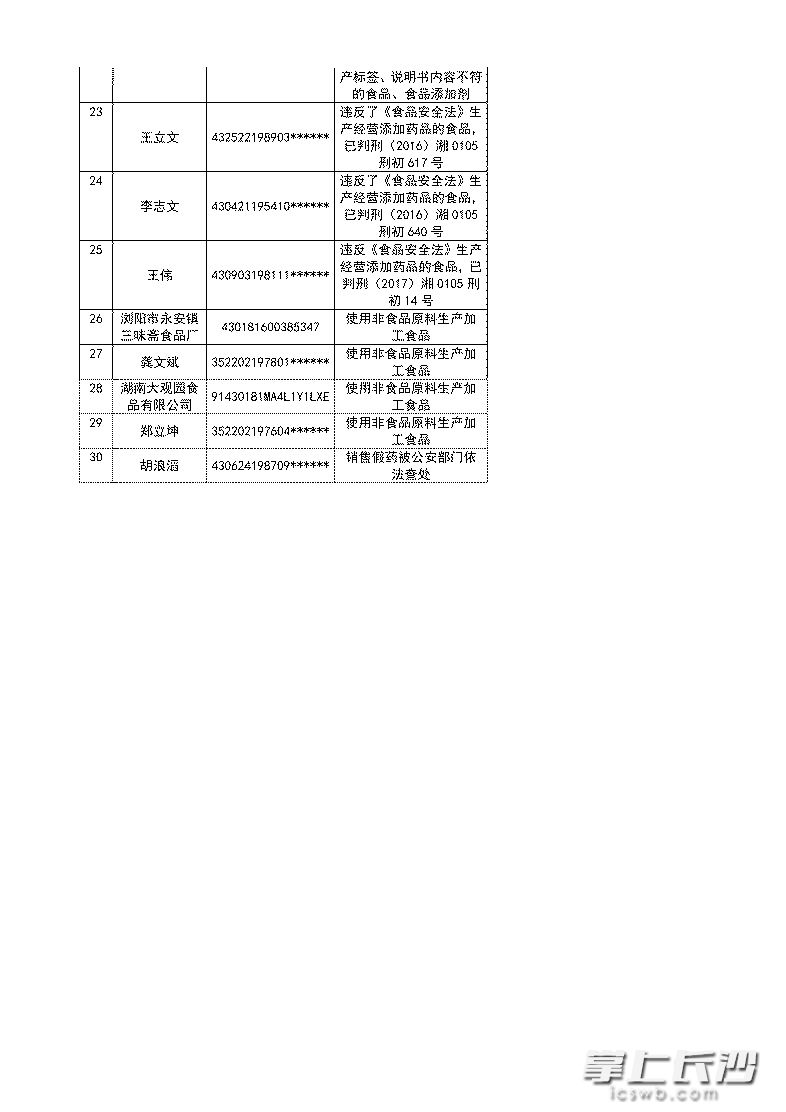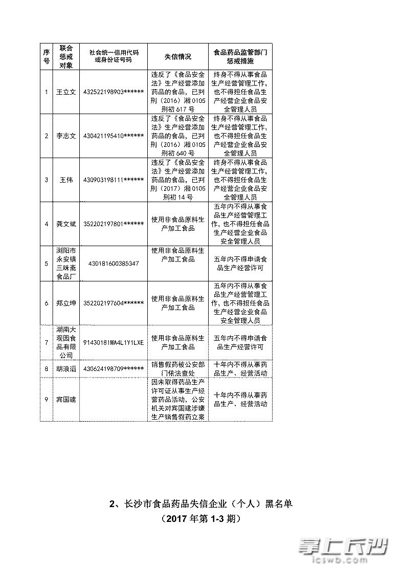 长沙市食品药品生产经营严重失信者联合惩戒名单(2017年第1-2期)