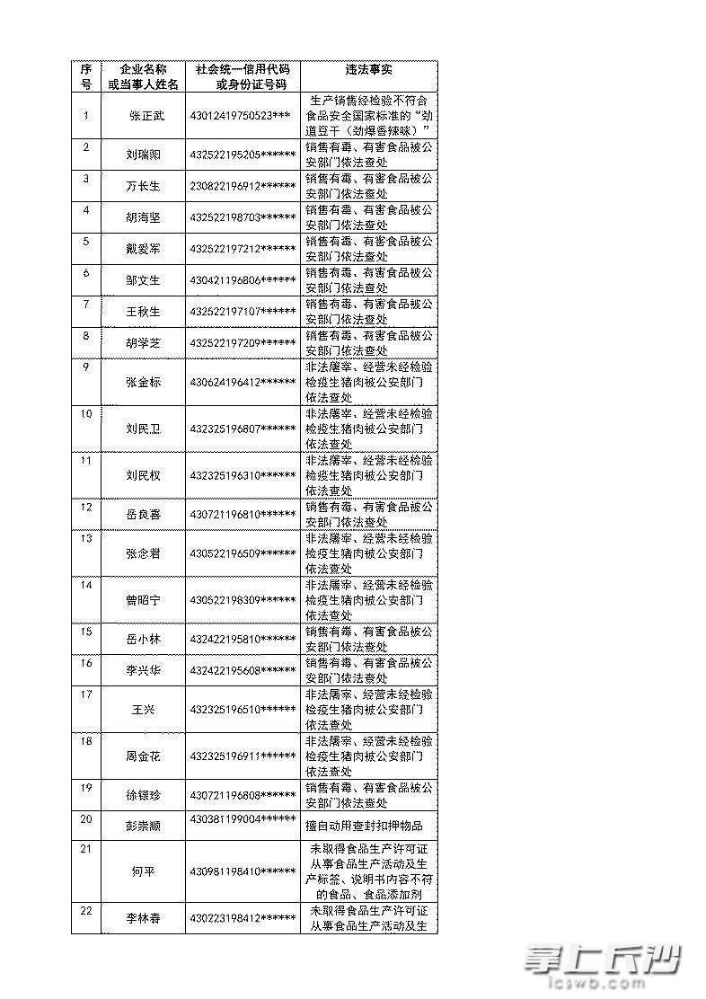 长沙市食药监局公布联合惩戒和失信黑名单
