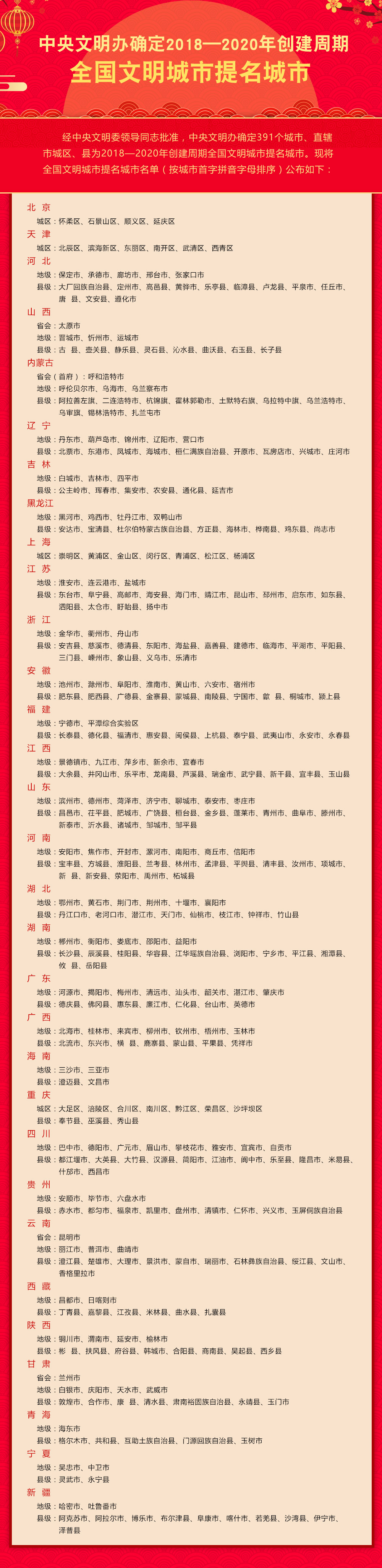 2018-2020年全国文明城市提名公布 长沙县浏阳市宁乡市入围 稿源:掌上长沙中国文明网2018-02-14 20:27 您的浏览器不支持 video 标签。 您的浏览器不支持 audio 标签。 【作者:】 【编辑:刘天乐】 长沙晚报社版权声明 关键词:文明城市 >>我要举报