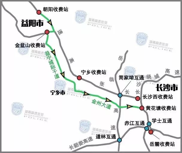 从益阳南线绕城高速金盆山收费站下高速,转益阳银城大道往东行驶进入长沙金洲大道,继续往东行驶可达长沙。益阳本地市民也可直接上银城大道往长沙。