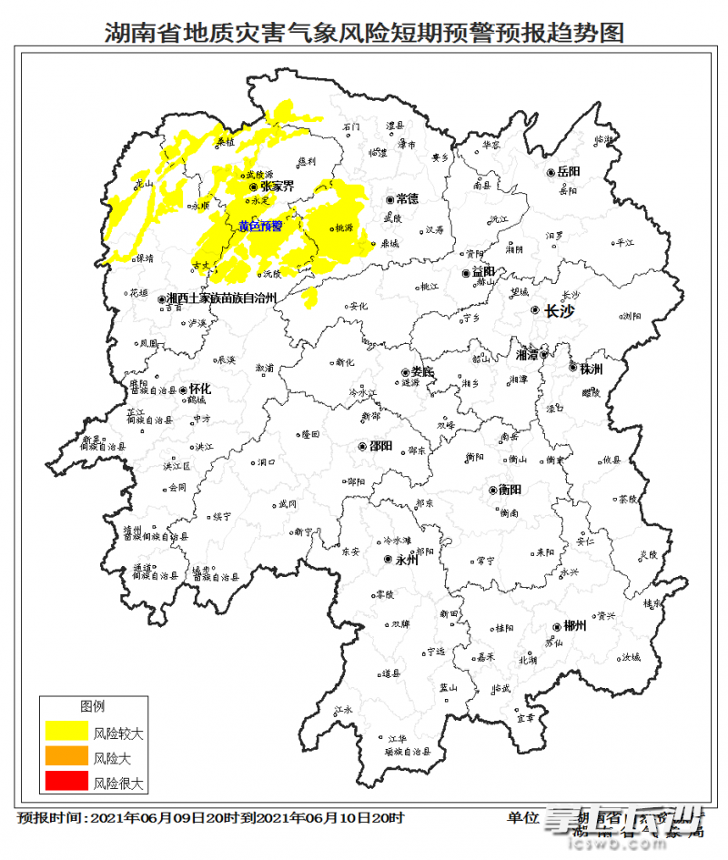 享受假期前,还是要防范节前这一波强降雨。湖南省自然资源厅与湖南省气象局今日下午已联合发布湖南省地质灾害气象风险预警:自6月9日20时至10日20时,受降雨影响,湘北、湘西北部分区域发生突发性地质灾害风险较大(黄色预警)。