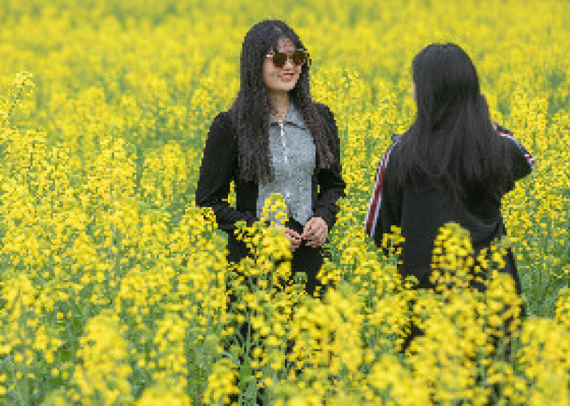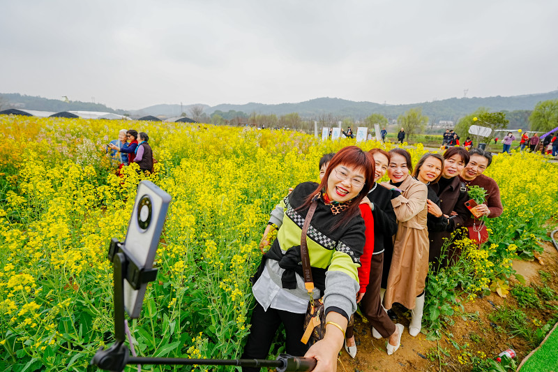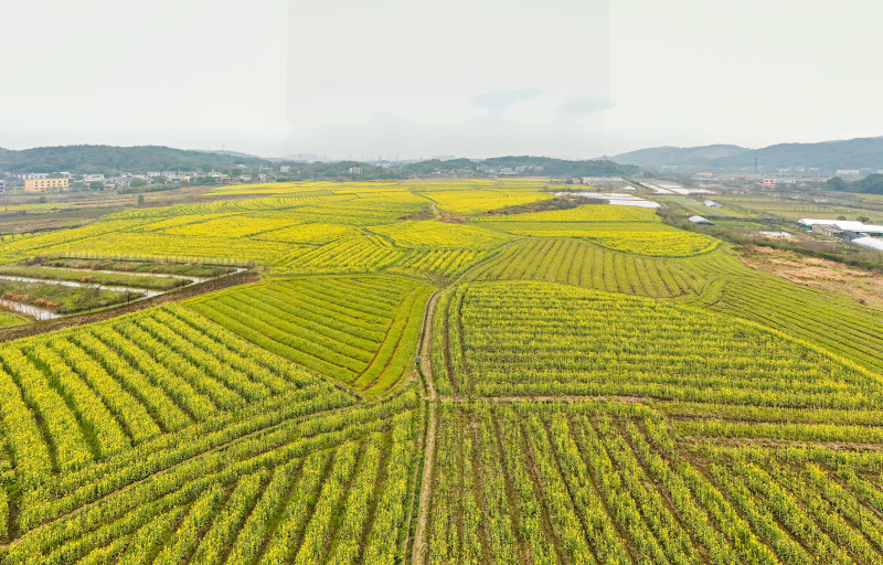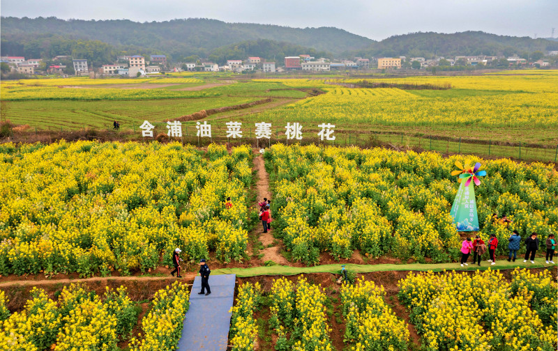 组图丨万亩油菜赛桃花,莫负春光走一遭
