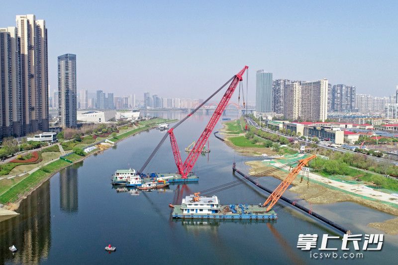 超长超大超重!湘江大道沿线排水等管线改造工程浏阳河沉管吊装完成