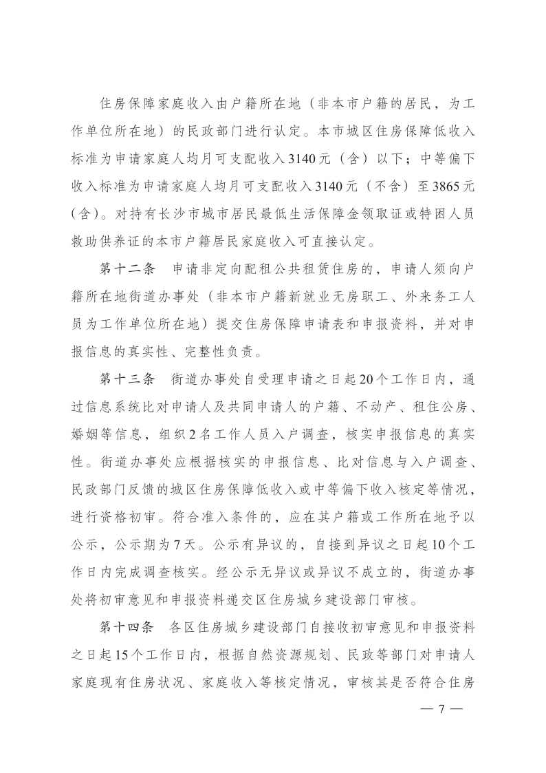 《办法》规定,长沙范围内,凡符合公租房申请条件的家庭(人员)须向户籍所在地街道办事处(非本市户籍新就业无房职工、外来务工人员为工作单位所在地)提交住房保障申请表和申报资料,街道办事处负责收件并进行资格初审和公示,街道办事处初审完成后交由各区住建部门完成资格审核并公示。