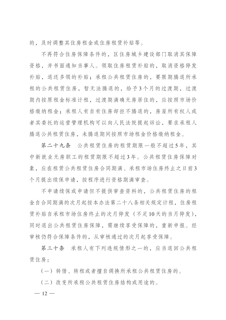 公租房保障对象资格实行动态管理,各区县(市)每年对保障对象资格复核一次。保障期内,保障对象因家庭人口、户籍、住房、收入等有关情况发生变化不再符合住房保障条件的,由区县(市)住建部门取消其保障资格,停发租赁补贴或限期腾退所承租的公共租赁住房。