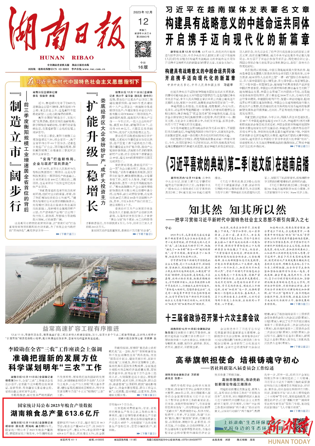 国家统计局公布2023年粮食产量数据 湖南粮食总产量613.6亿斤