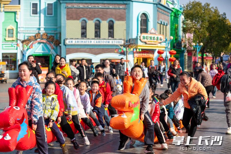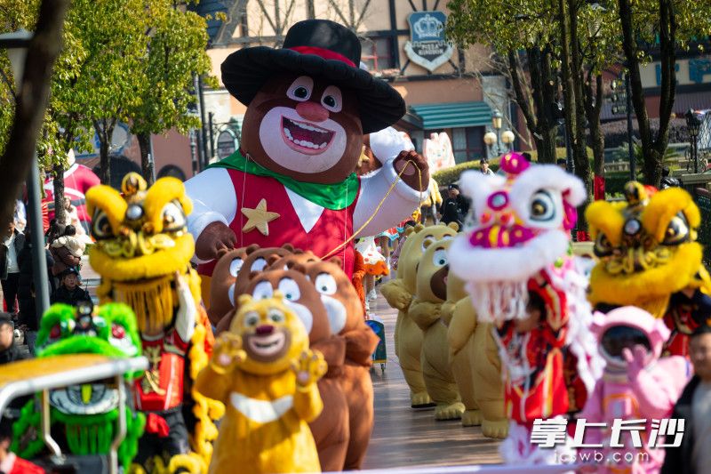 株洲方特梦幻王国推出的“熊出没狂欢中国年”将年味拉满,受到孩子们的追捧。只见“熊出没”家族载歌载舞,与游客欢喜互动。在热闹的“熊出没”新春市集上,做糖画、变脸、打糍粑等民俗活动引来众多游客体验。