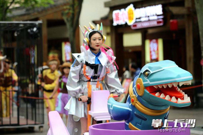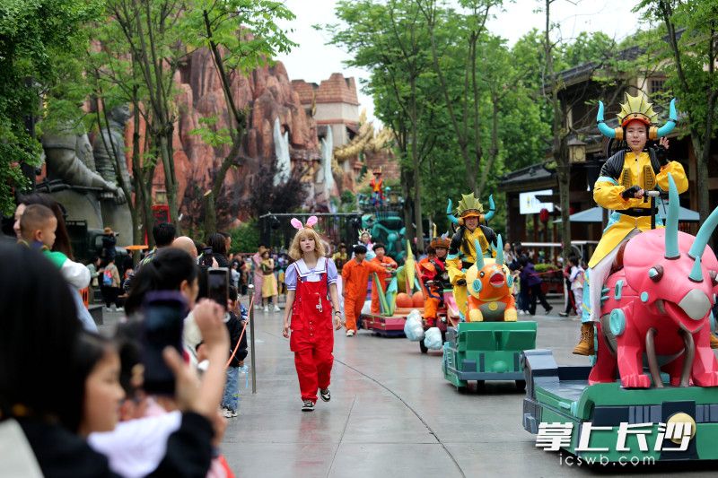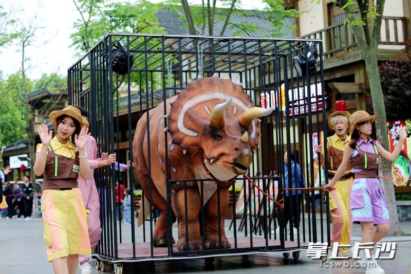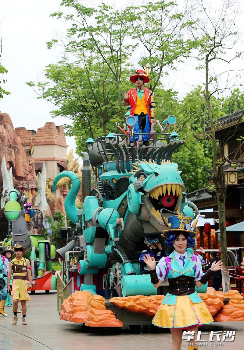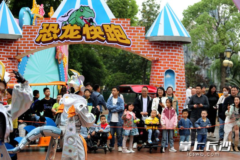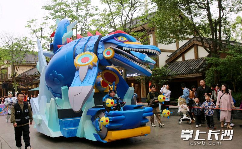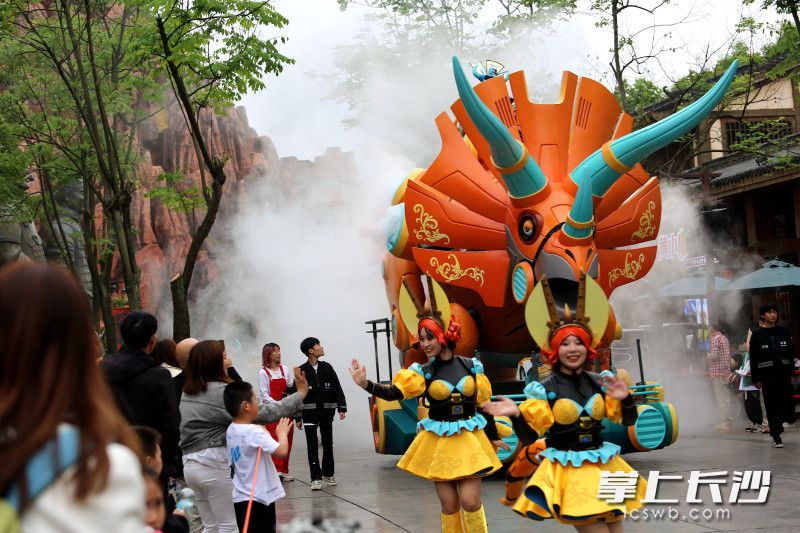 长沙晚报掌上长沙5月2日讯(全媒体记者 贺文兵 通讯员 文艺 摄影报道)5月1日,株洲方特五一假期重磅活动——五大方阵恐龙机甲花车大巡游火爆登场,霸王龙、马门溪龙、三角龙等恐龙机甲惊艳亮相。5月1日至5月5日,株洲方特梦幻王国和欢乐世界两园每天上演恐龙机甲花车大巡游和无人机天幕秀。白天,威武霸气的恐龙机甲带游客沉浸在奇幻和科技的世界里;夜晚,3000架无人机在夜空中飞出“平凡亦有光”“劳动节快乐”等字样及鲲鹏、辰龙等图案,演绎“王者归来”星空情景剧,致敬每一位劳动者。