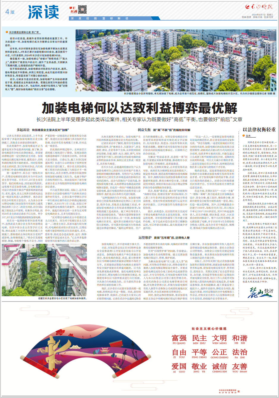 实际上,长沙有关部门也正在加强电梯加装和后期使用管理,探索加装电梯的后期管养和运维,使加装电梯安装有序、管养到位、使用安全。芙蓉区实现了安全监管常态化,由住建、市场监管等相关部门定期组织开展电梯安全检查,每日工作人员轮序对加装并投入使用的电梯进行实地巡查,在电梯设备维保、技术问题解决、施工质量监督上提前介入、提供专业指导,降低安全风险,提高运行质量。同时定期组织召开电梯维保工作会议,对相关安全责任人以及维保单位进行专业培训,持续提升安全管理水平。