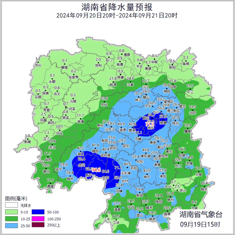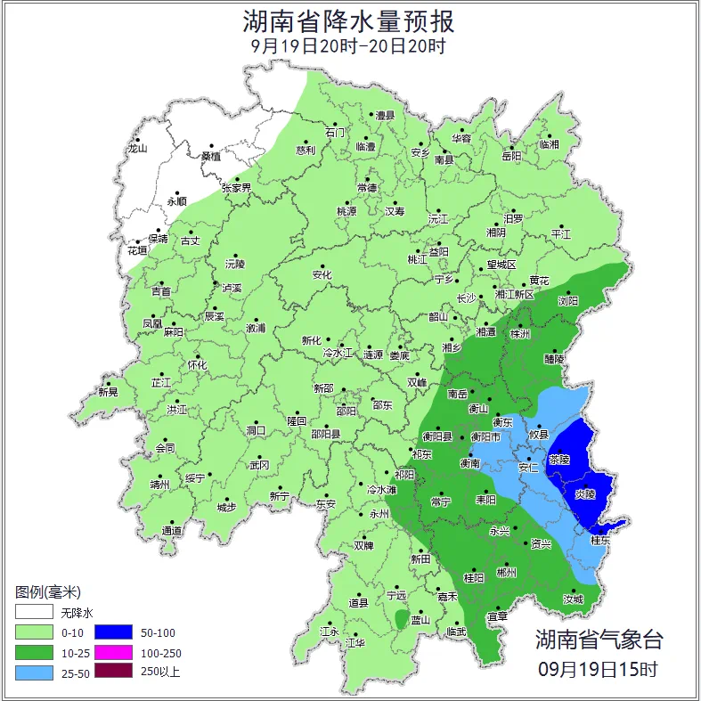 20日晚上到21日白天,湘中、湘南部分地区中到大雨,其中长沙(宁乡)、永州(市区、东安)、湘潭(市区、韶山、湘潭县、湘乡)、邵阳(城步、洞口、邵阳县、绥宁、武冈、新宁)、娄底(双峰)有暴雨,江河湖面局地阵风可达9到11级;21日晚上到22日白天,永州、郴州局地有大雨,江河湖面局地阵风可达9到11级,最低气温将降至18℃至20℃。