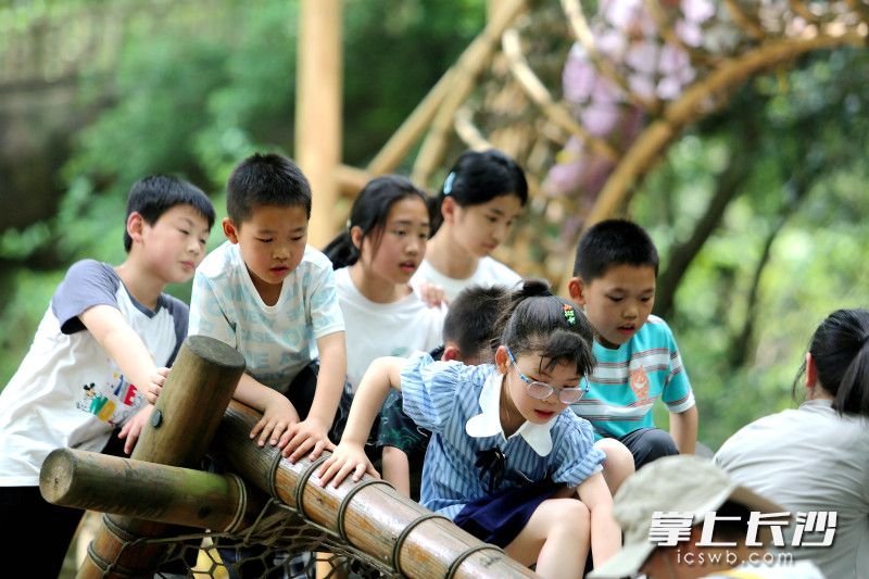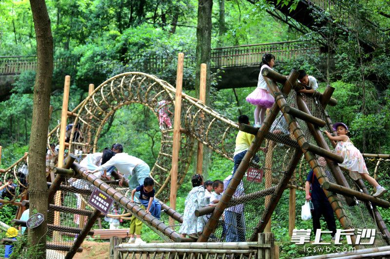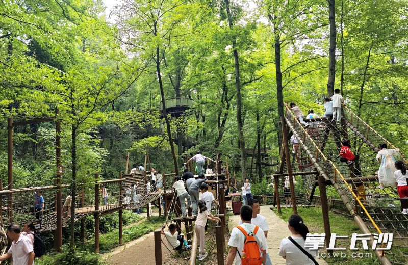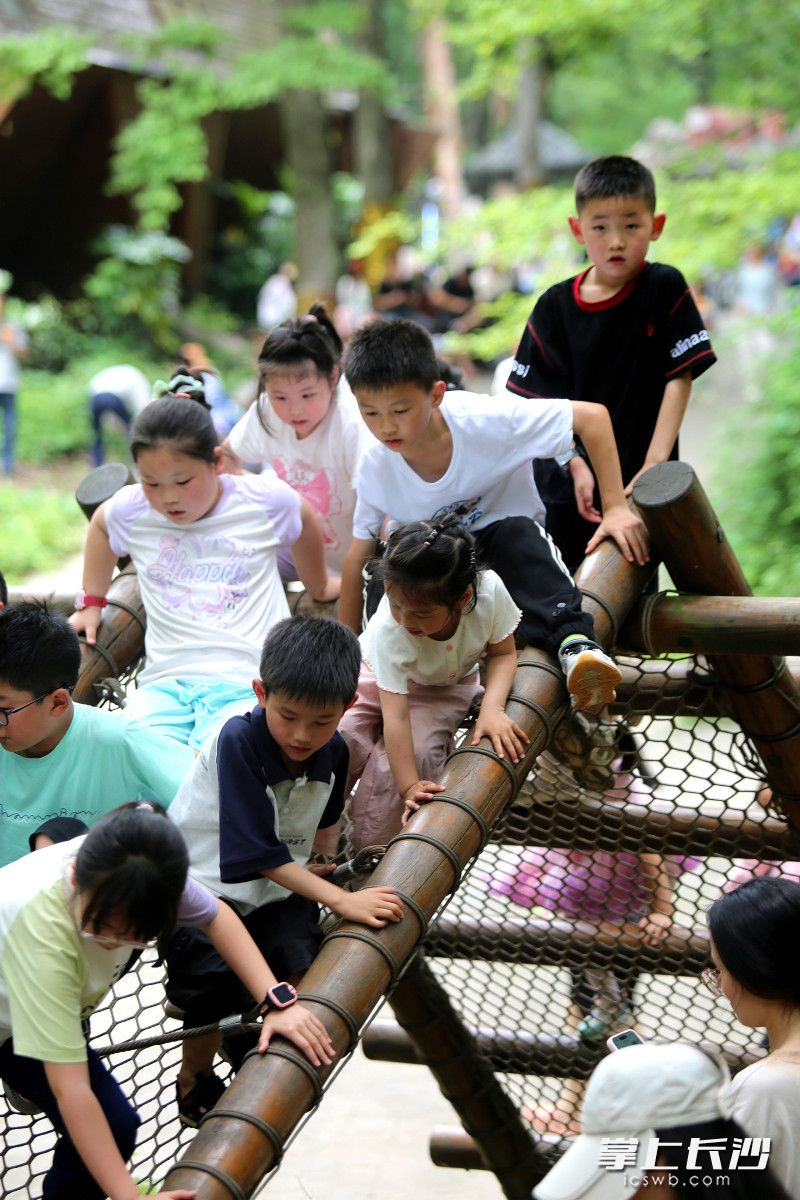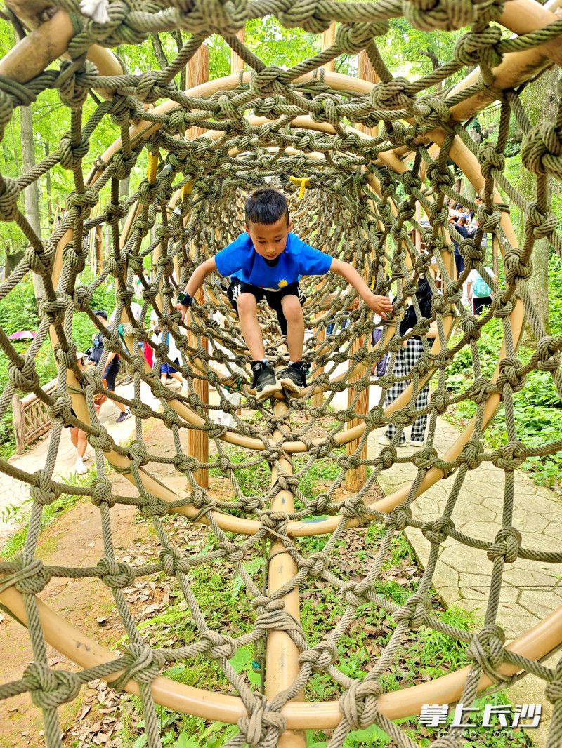 长沙晚报掌上长沙5月4日讯(全媒体记者 贺文兵 摄影报道)今日,长沙石燕湖生态游乐园,不少小朋友在攀爬园里体验攀爬的刺激和快乐。长沙石燕湖生态游乐园因优美的生态环境和丰富的游乐项目,五一假期每天吸引大量游客入园游玩度假。