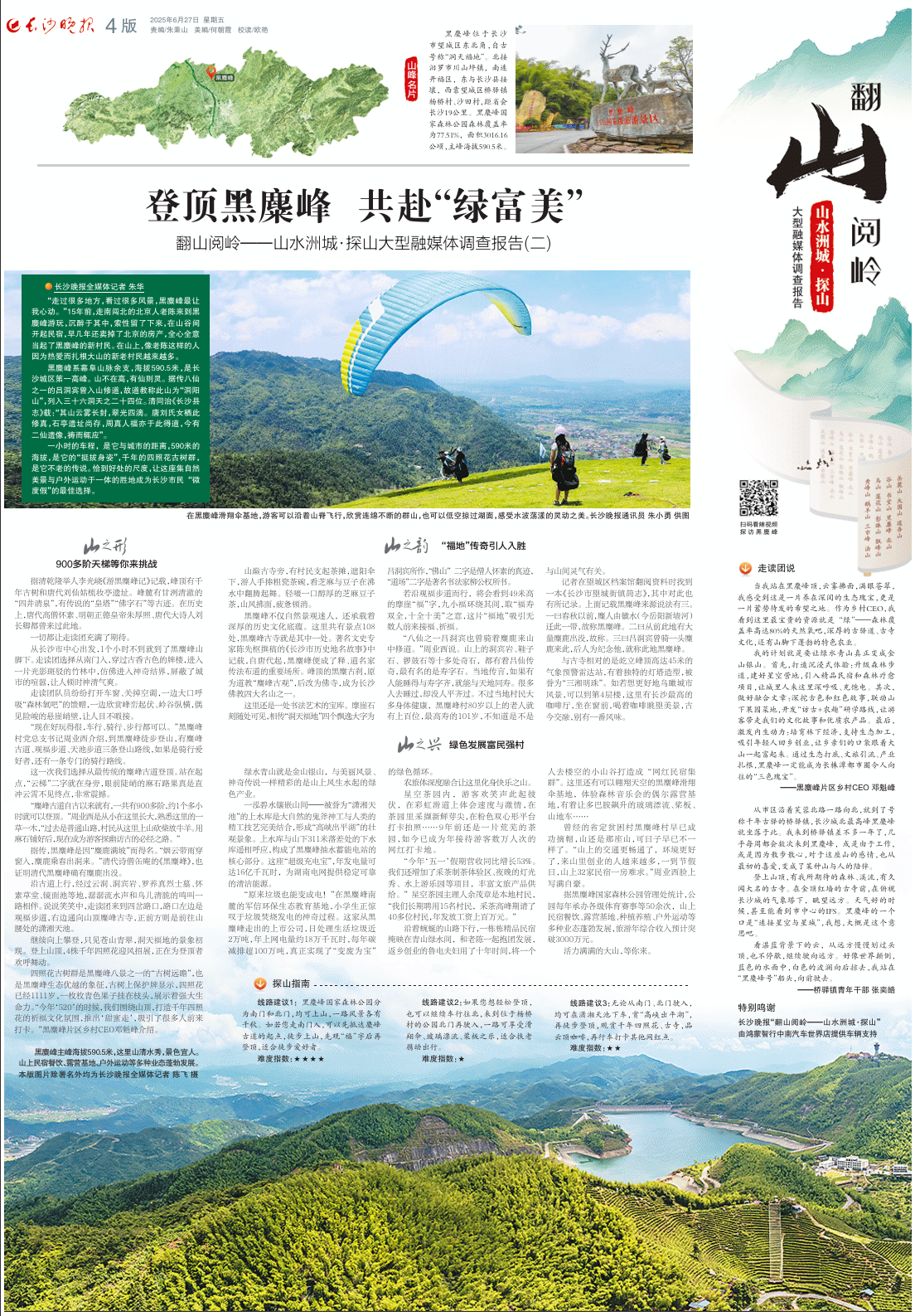 我的计划就是要让绿水青山真正变成金山银山。首先,打造沉浸式体验:升级森林步道,建好星空营地,引入精品民宿和森林疗愈项目,让城里人来这里深呼吸、充饱电。其次,做好融合文章:深挖古色和红色故事,联动山下果园菜地,开发“访古+农趣”研学路线,让游客带走我们的文化故事和优质农产品。最后,激发内生动力:培育林下经济,支持生态加工,吸引年轻人回乡创业,让乡亲们的口袋跟着大山一起富起来。通过生态打底、文旅引流、产业扎根,黑麋峰一定能成为长株潭都市圈令人向往的“三色瑰宝”。