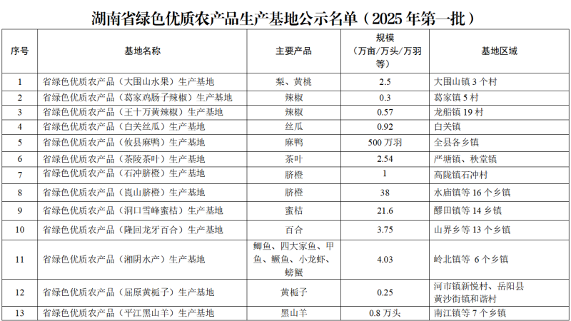 长沙两基地入选!湖南省绿色优质农产品生产基地名单公示