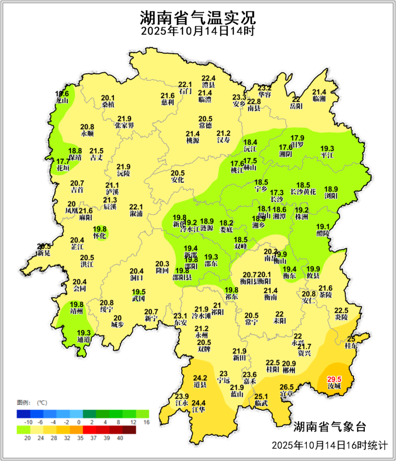 长沙晚报掌上长沙10月14日讯(全媒体记者 舒元臻)近日,湖南阴雨天气“在线”,气温下降明显。记者今日从湖南省气象台了解到,今日14时湘中和湘东部分地区气温降至20℃以下,长沙仅为17.3℃!与此同时,省气象台预计17日晚到20日湖南将迎今年入秋以来最强降温过程并伴大风降雨天气。但在此之前,14日到17日气温在波动中略回升,部分地区最高气温升至34℃。