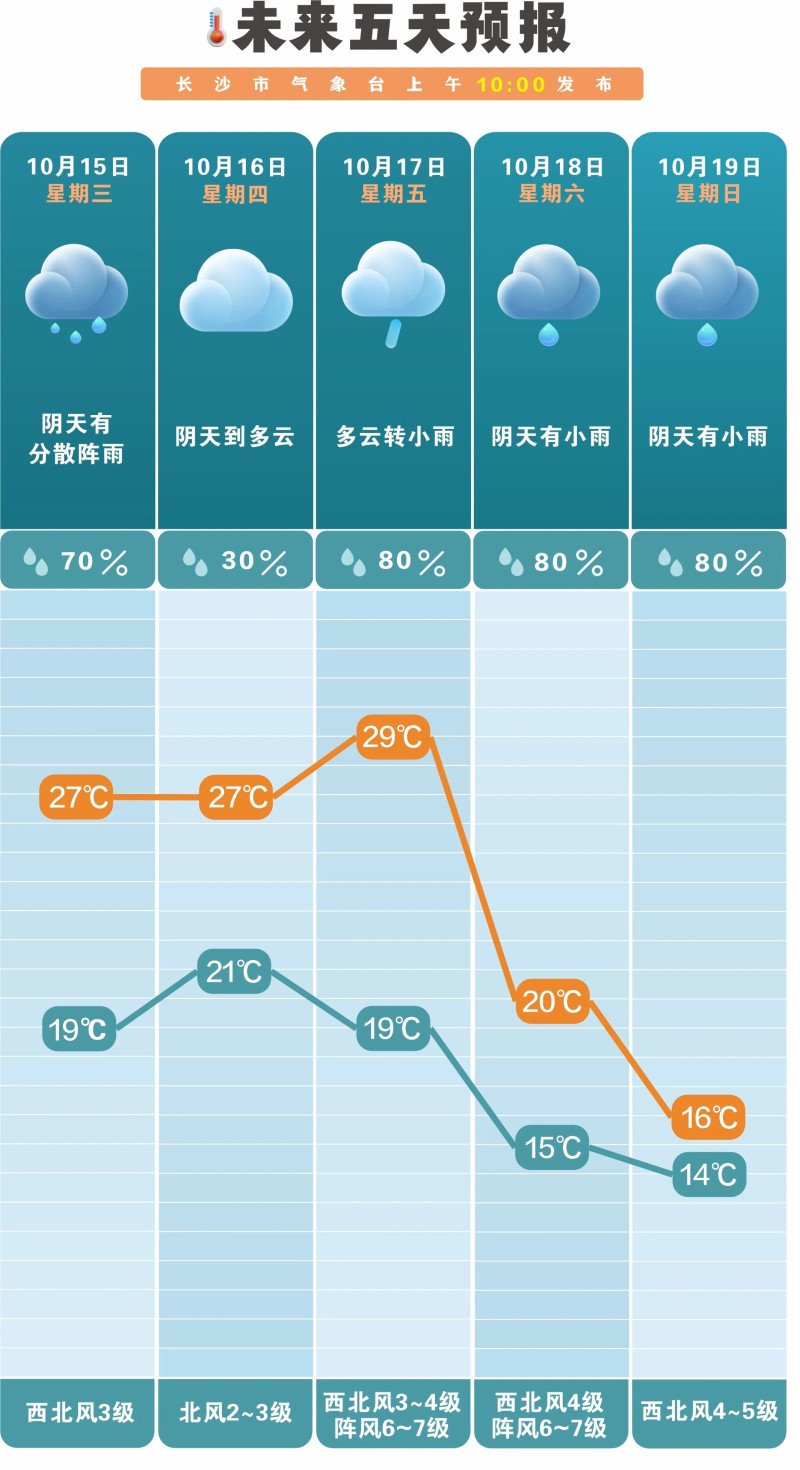 凉风起秋意浓,长沙的天气舞台也被“阴雨”强势接管!据长沙市气象台预计,长沙市民要暂时跟阳光说“拜拜”,迎接的是湿漉漉的天气“套餐”。具体来看,15日 “分散阵雨”模式,降水概率高达70%,出门不带伞,分分钟变“潮人”;16日虽然雨势稍缓,转为阴天到多云,但天空依旧“表情沉重”,偶尔或有零星小雨来刷“存在感”;真正的“降雨大戏”在后头,17日长沙多云转小雨,降水概率飙上80%,妥妥的“泡汤模式”,但气温有所回升,最高气温升至29℃。