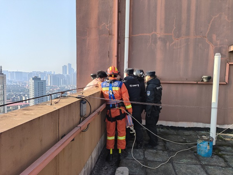 天心区消防救援大队劳动路消防救援站接到指令后迅速响应。到达现场后,消防员第一时间与被困外卖小哥取得联系,通过电梯门缝安抚其情绪,同时快速勘查现场情况。经了解,电梯因机械故障停运在楼层之间,轿厢内空间狭小、通风有限,救援刻不容缓。根据现场情况,消防员火速展开救援,救援过程中,消防员持续与被困人员沟通,实时告知救援进度。1时50分,随着“咔嗒”一声轻响,电梯门被成功打开,被困近1小时的外卖小哥安全脱险。