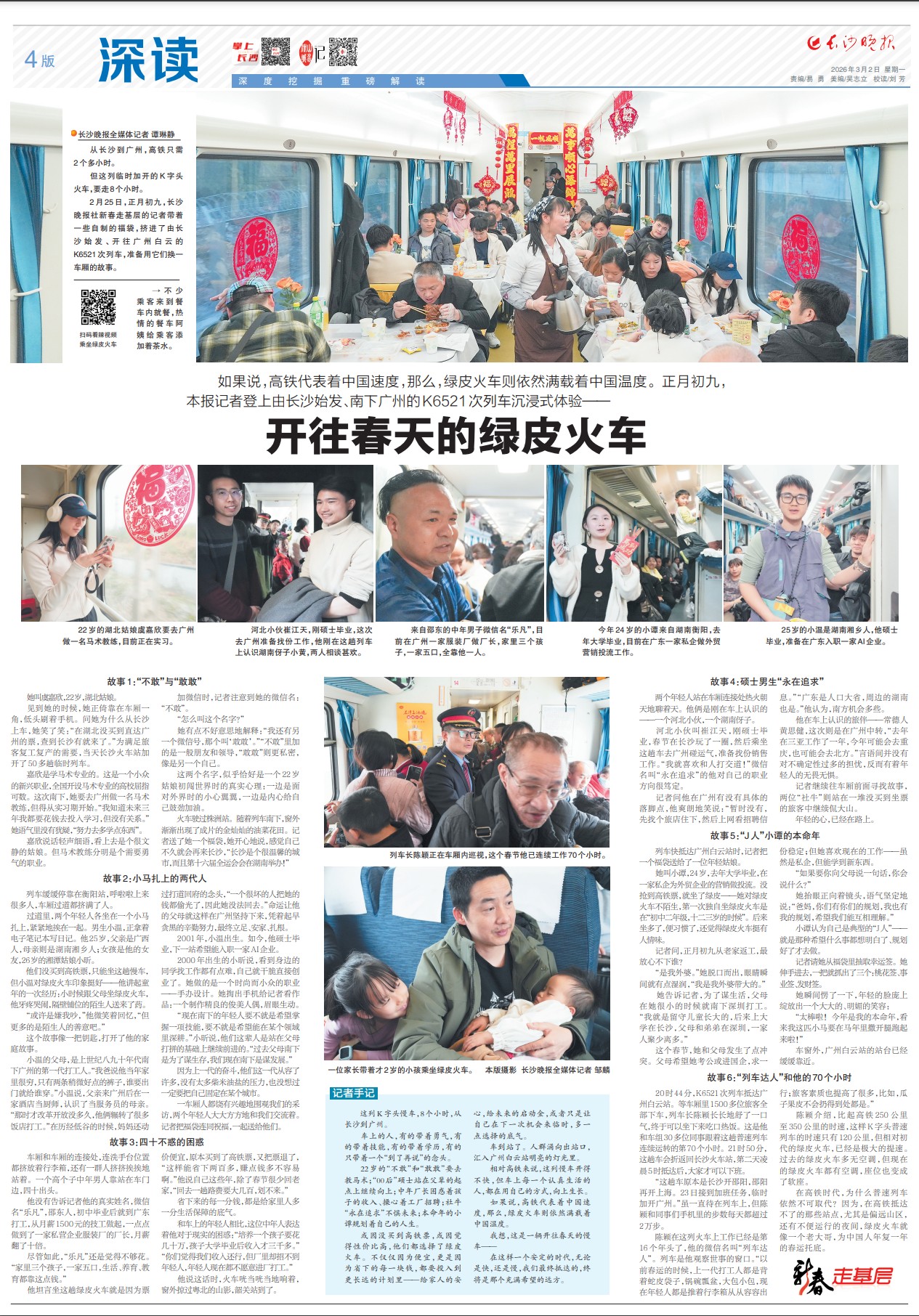 如果说,高铁代表着中国速度,那么,绿皮火车则依然满载着中国温度。正月初九,本报记者登上由长沙始发、南下广州的K6521次列车沉浸式体验——