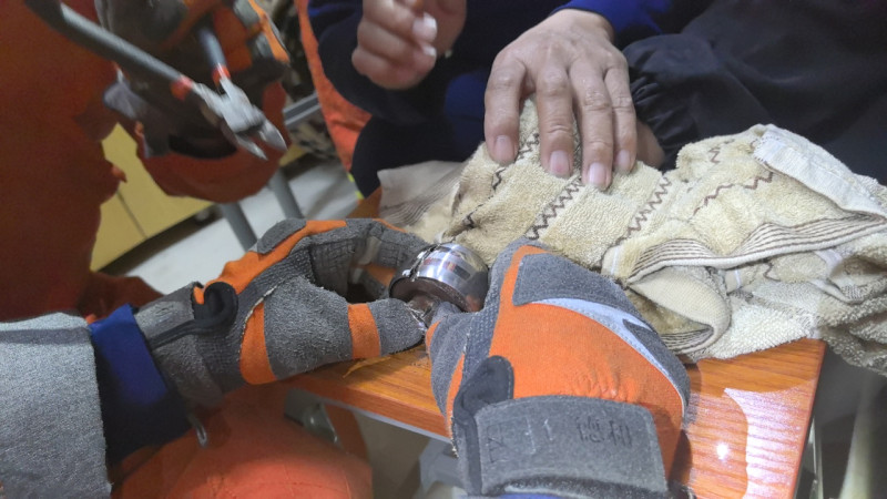“有我们在,别慌!”救援人员首先轻声安抚女子情绪,引导她保持冷静,缓解其紧张与疼痛感。与此同时,指挥员迅速蹲身查看伤情,仔细评估铁钩与平衡球底座的连接结构,快速制定出“剪切分离”的救援方案。救援人员屏住呼吸、精准操作,全程紧盯剪切位置,小心翼翼控制工具力度,既要快速剪断铁钩,又要最大限度保护女子的脚部不受二次伤害。时间一分一秒过去,现场气氛紧张到让人窒息,每一次操作都牵动着在场所有人的心。经过10分钟的紧张作业,“咔嚓”一声脆响,牢牢“咬住”女子脚底的铁钩被成功剪断,与平衡球彻底分离。随后,救援人员小心翼翼地将女子抬上担架,平稳送上救护车,顺利移交给现场医护人员进行专业治疗。